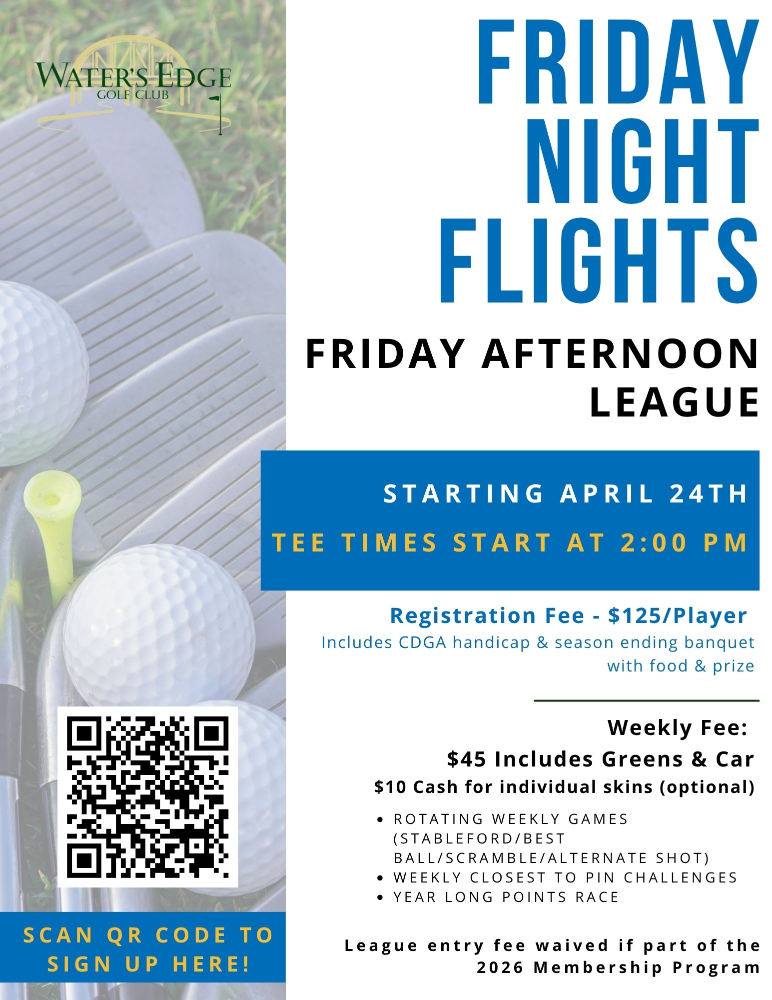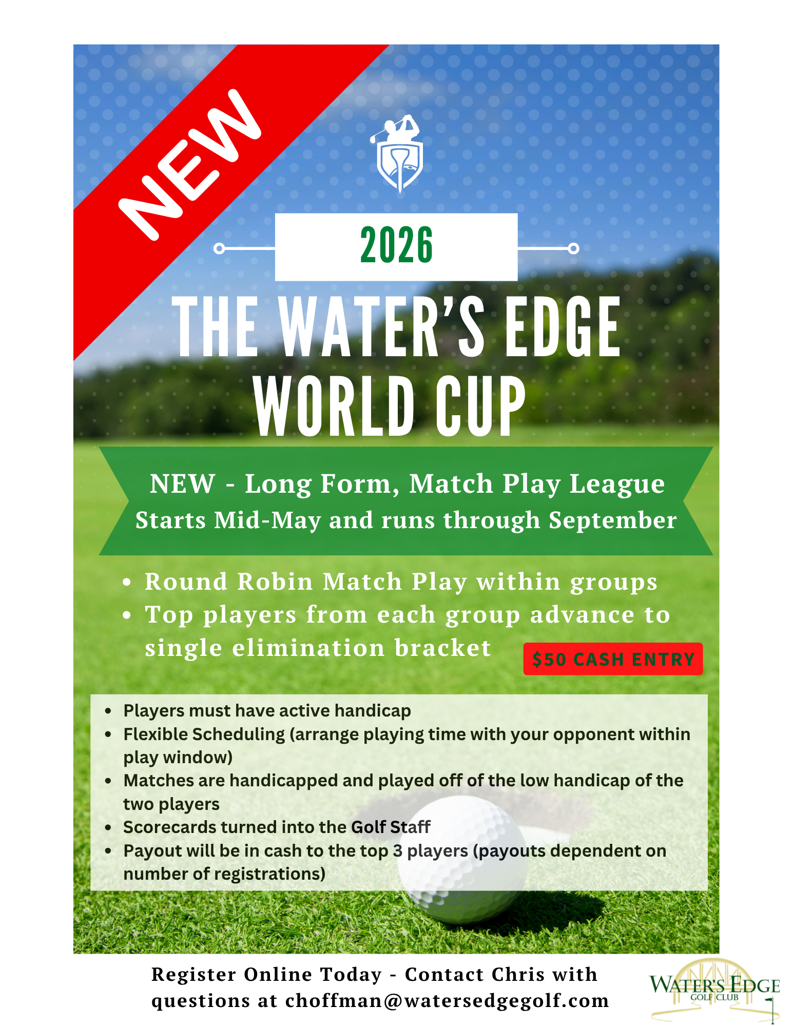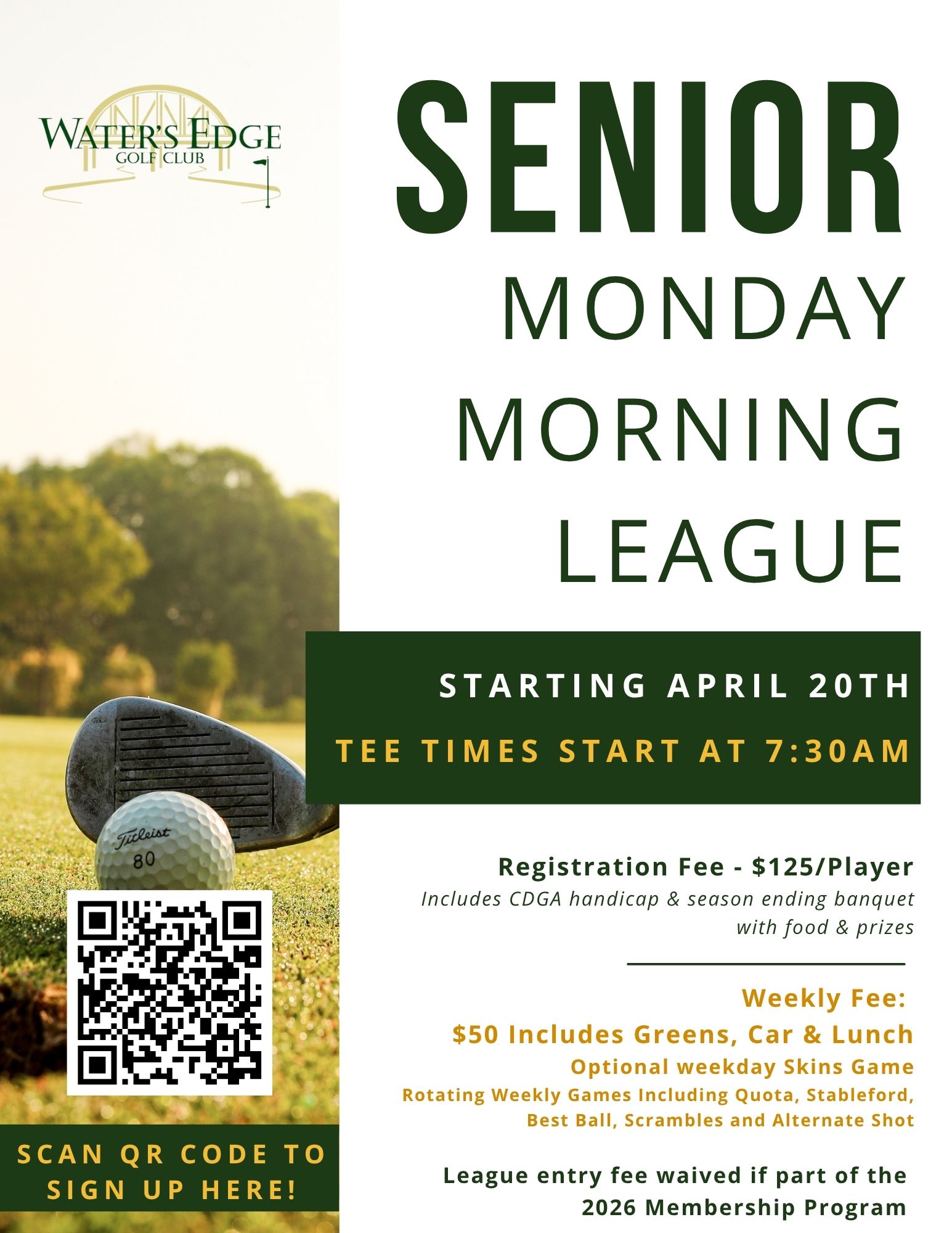 Contact Debbie to sign up today by emailing dschneider@watersedgegolf.com.
